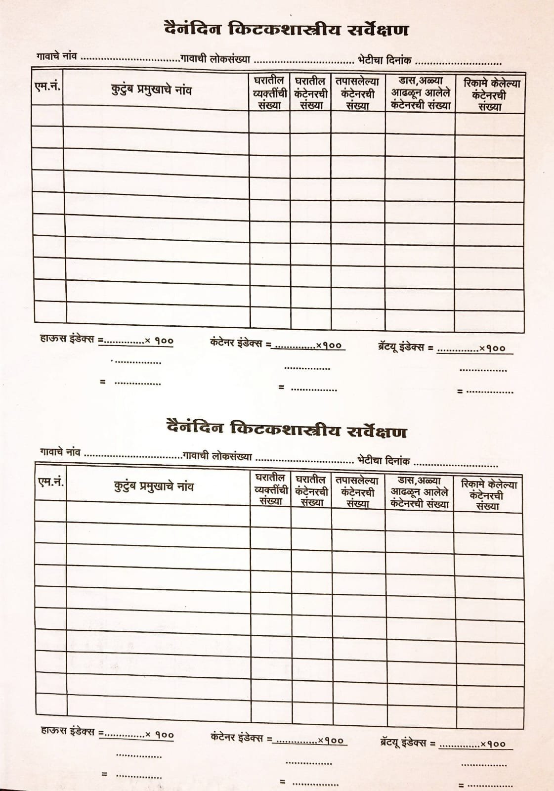 आरोग्य विभाग कंटेनर सर्वेक्षण रजिस्टर